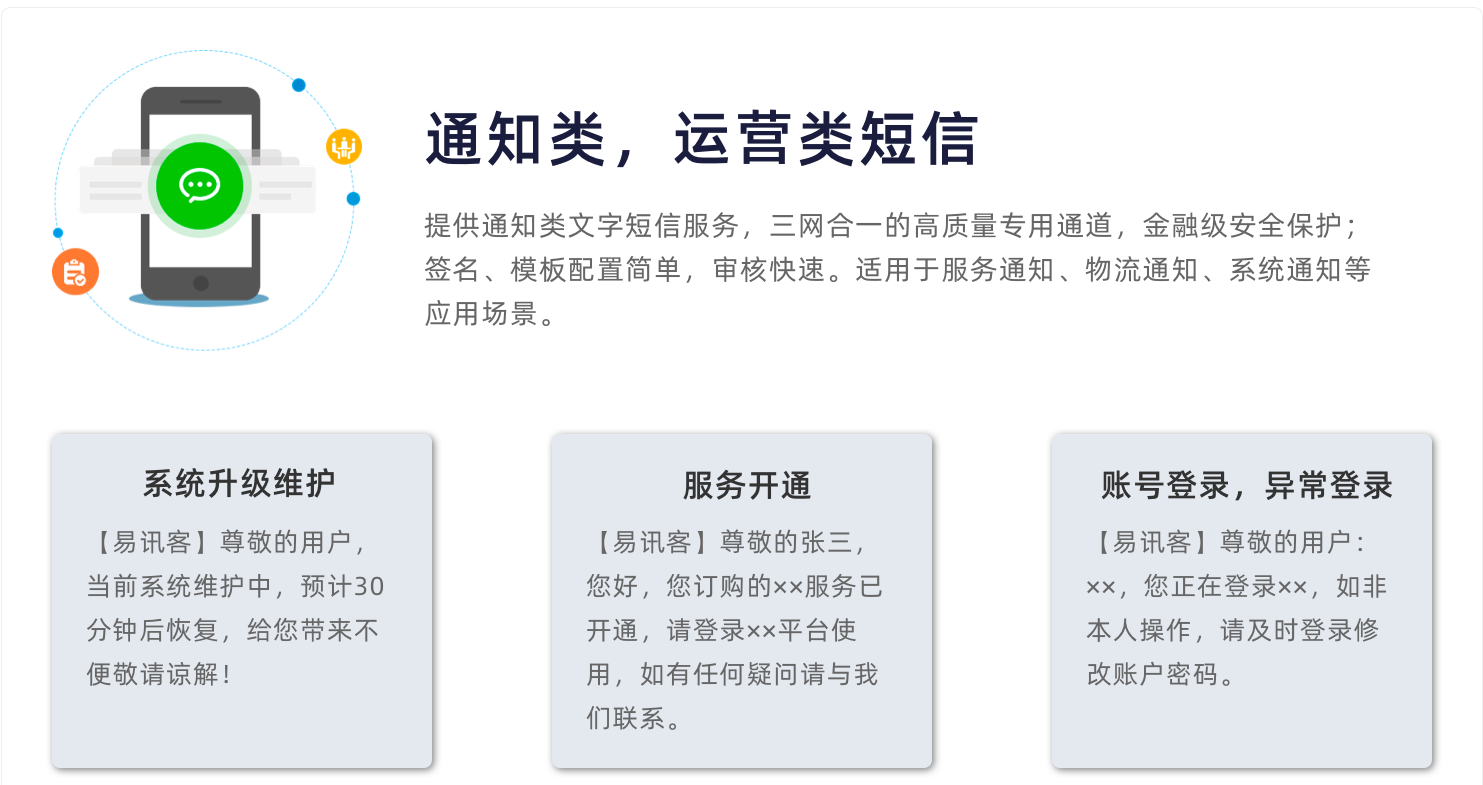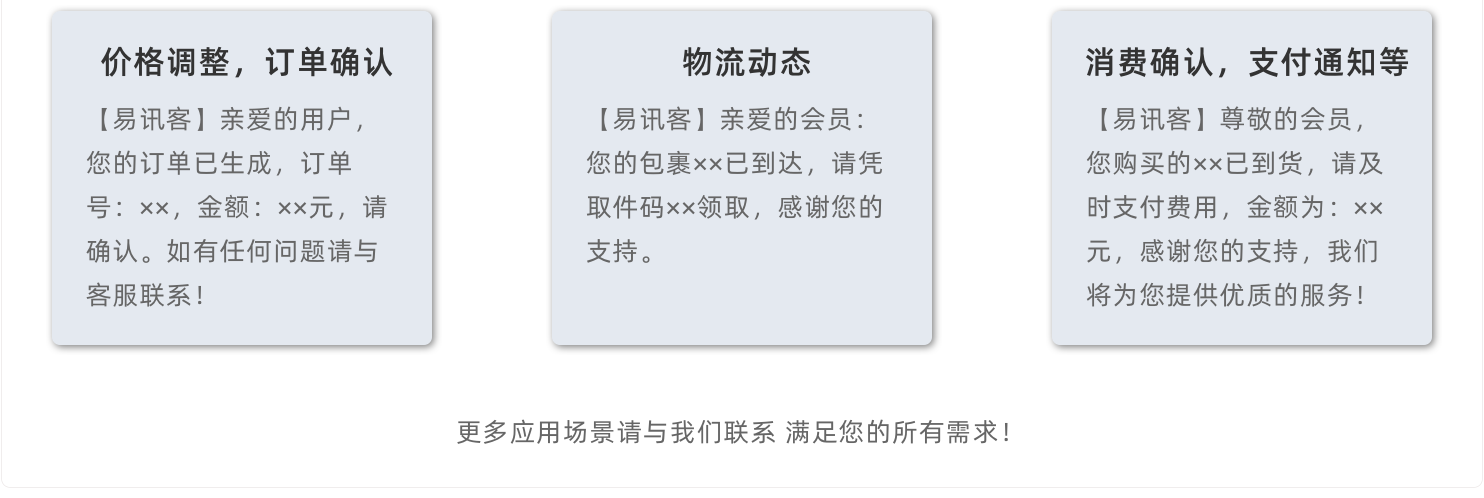答:经过近9年运行,易讯客®短信平台几乎支持所有常见语言与APP,包含php、web service、http、c、AspHttp、java等!